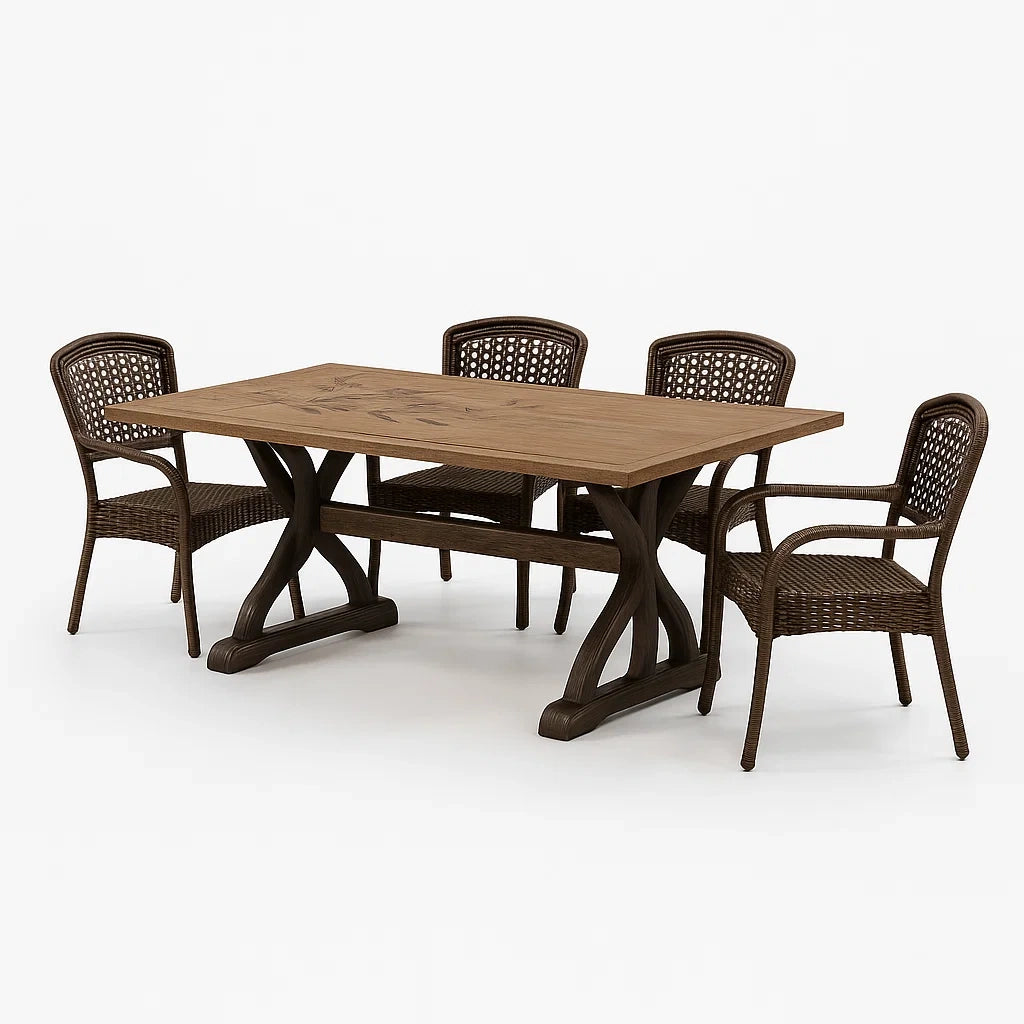 Ensemble canapé en rotin synthétique marron + table basse en bois
