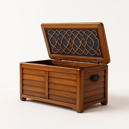 Table à manger rectangulaire en bois massif avec motifs géométriques -